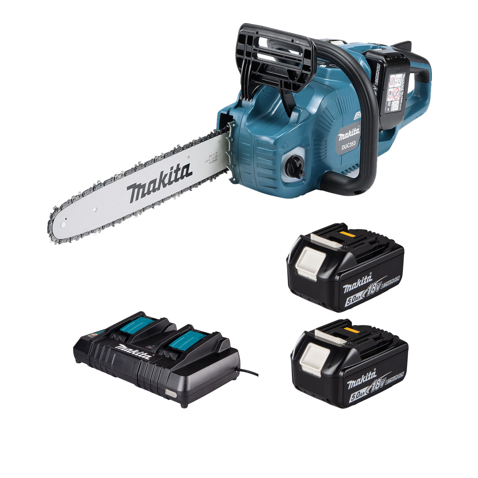 Makita DUC353 Twin 18v LXT Cordless Brushless Chainsaw 350mm 2 x 5ah Li-ion Battery Charger