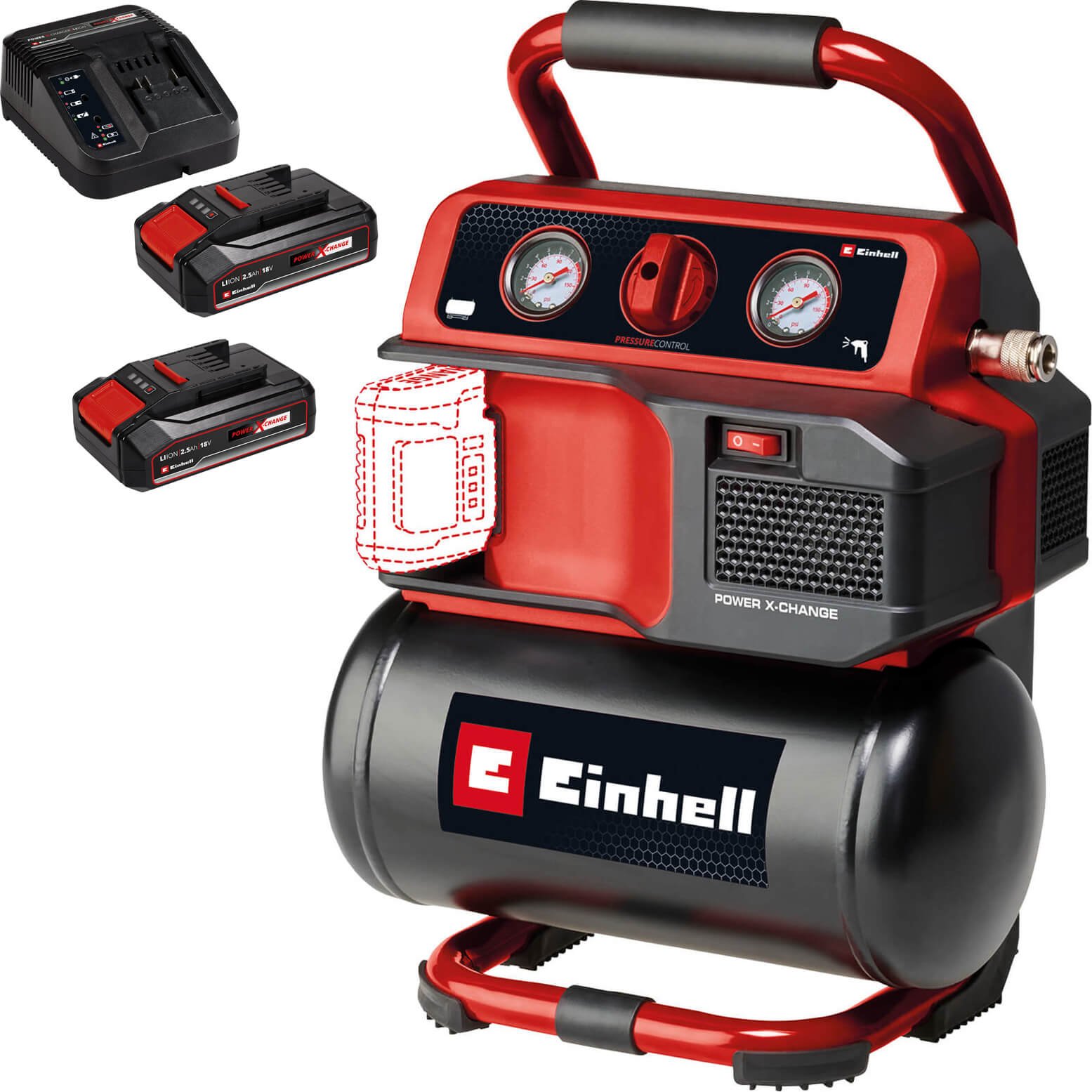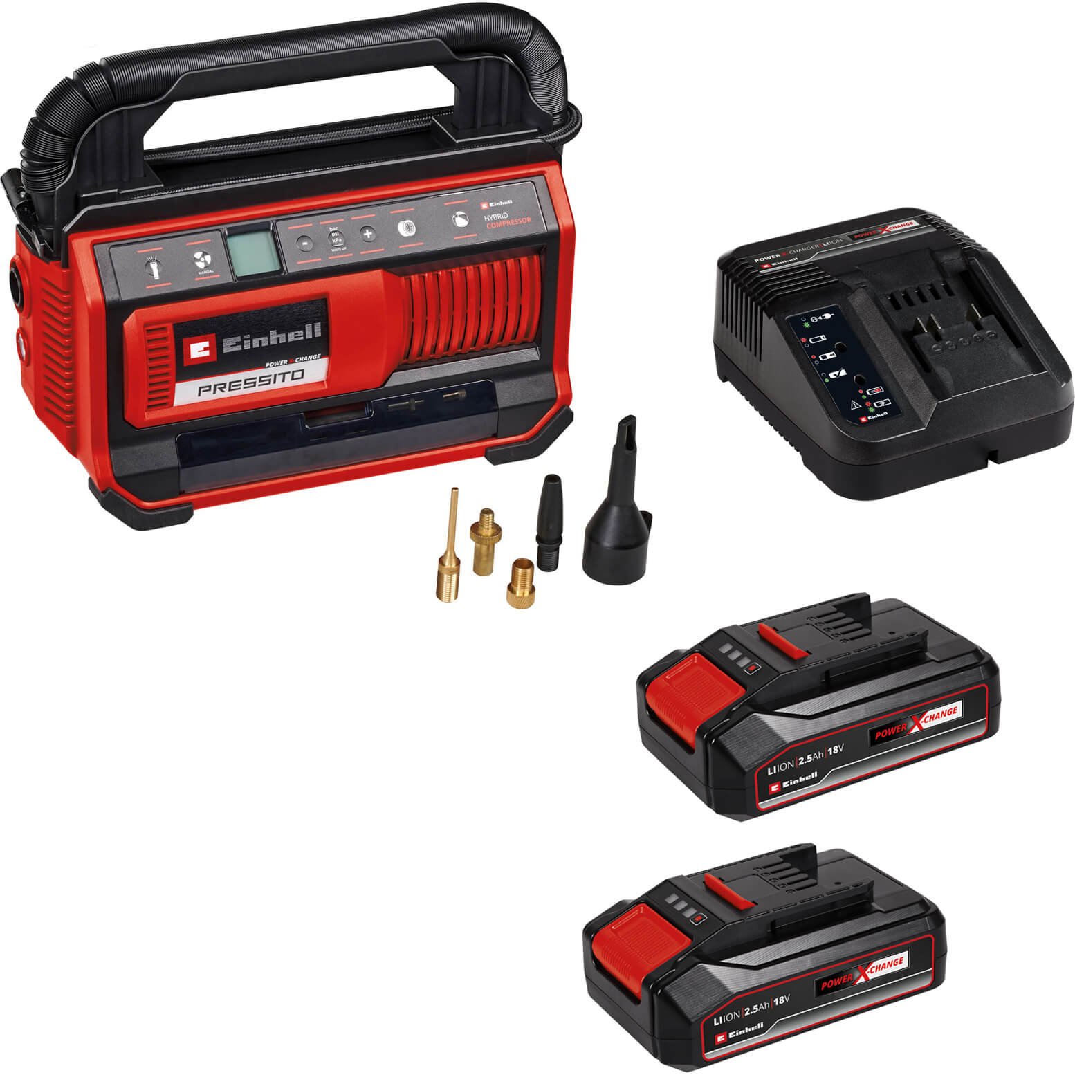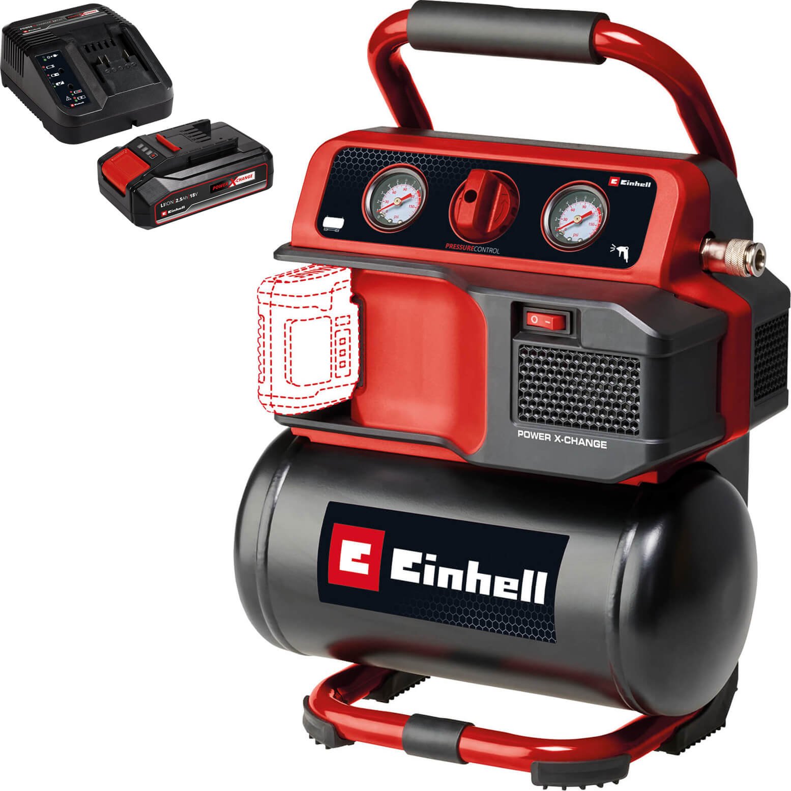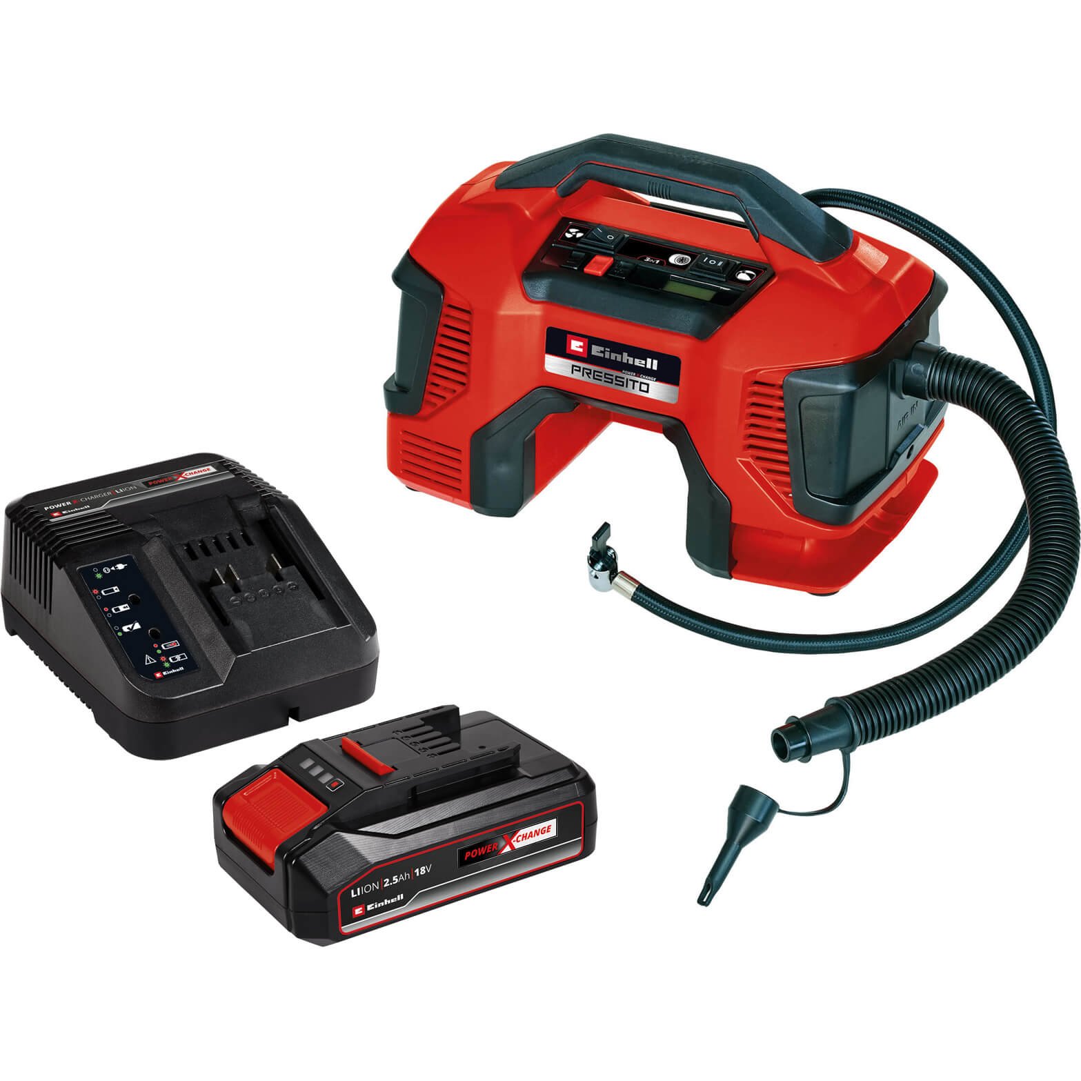 Einhell PRESSITO 18/25 18v Cordless or Mains Air Compressor and Inflator 2 x 2.5ah Li-ion Battery Charger