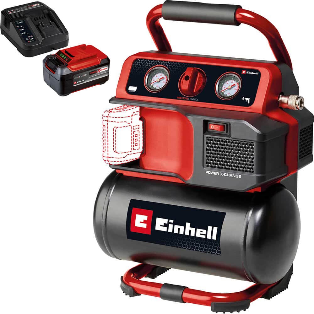 Einhell TE-AC 18/75 Li OF 18v Cordless Oil Free Air Compressor 5 Litre 2 x 5.2ah Li-ion Battery Charger