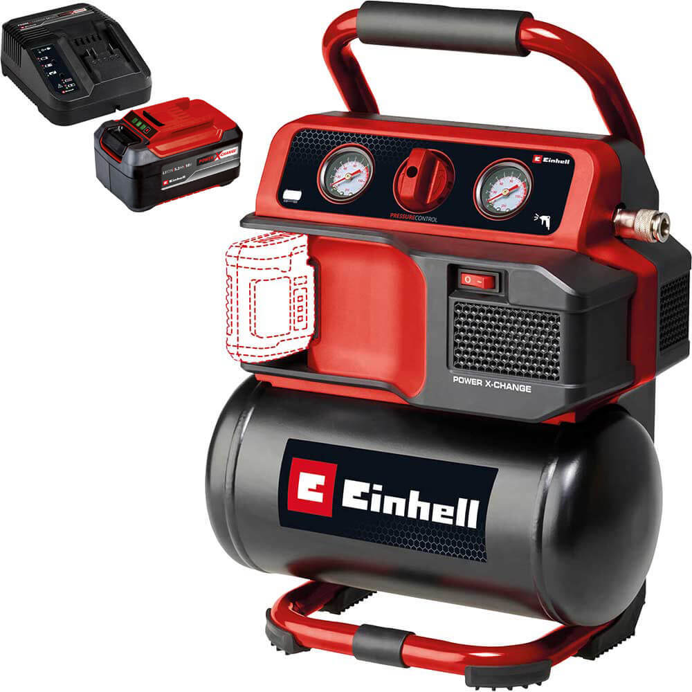 Einhell TE-AC 18/75 Li OF 18v Cordless Oil Free Air Compressor 5 Litre 1 x 5.2ah Li-ion Battery Charger