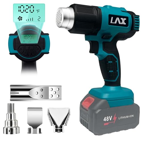 L1NXIXI Cordless Heat Gun for Makita 18V (BL1830/1840/1850/1860), 50-550°C Hot Air Gun with LCD, 5 Air Levels & 4 Nozzles Kit, for Paint Stripping, Shrink Tubing, Crafts (Battery Not Included)