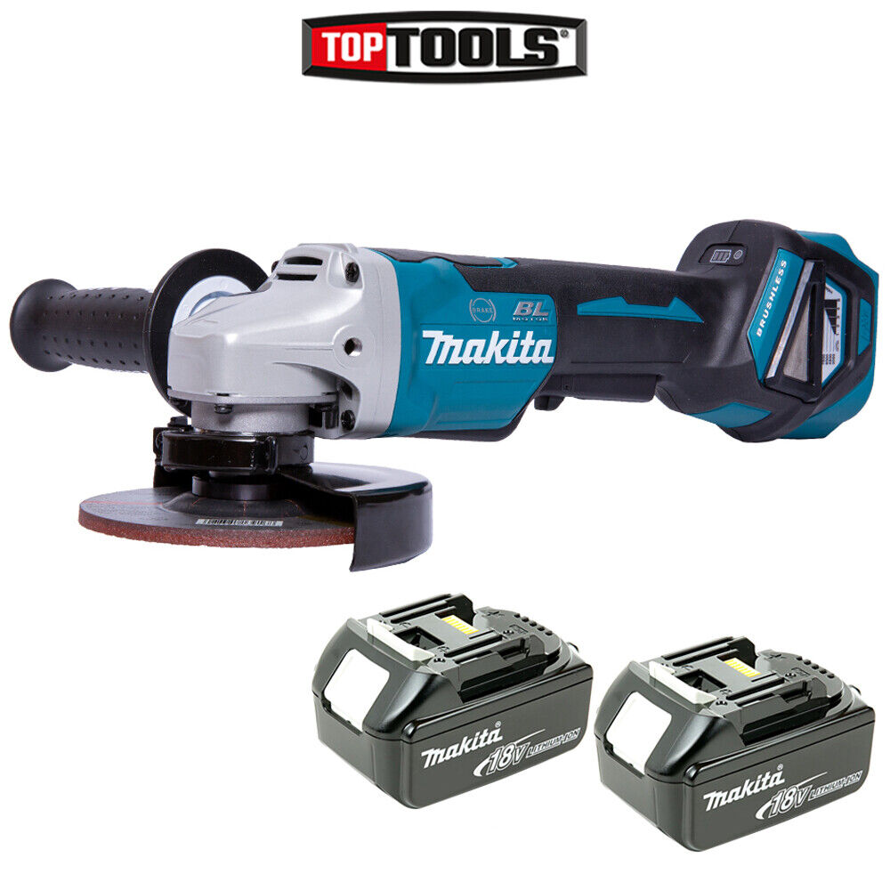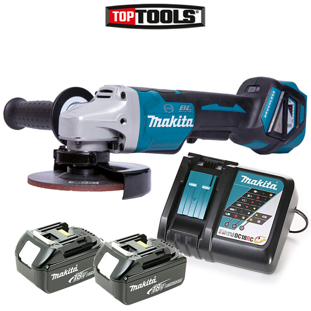 Makita DGA517 18V Brushless Angle Grinder 125mm + 2 x 5.0Ah Batteries & Charger