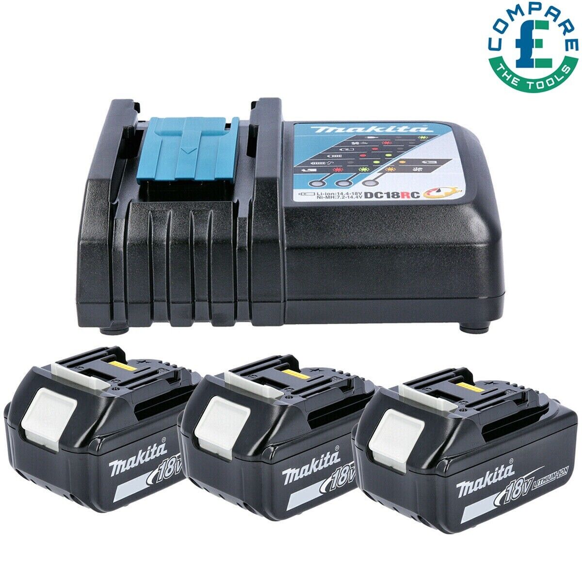 Makita DC18RC Fast Charger With 3 x BL1850 5.0Ah Batteries