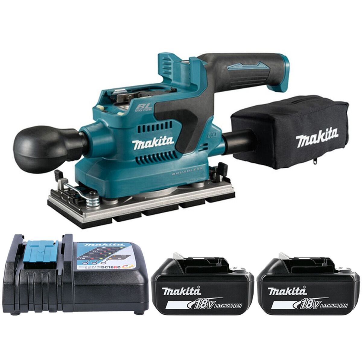 Makita DBO381 18V LXT Brushless Finishing Sander With 2 x 5.0Ah Batteries & C...