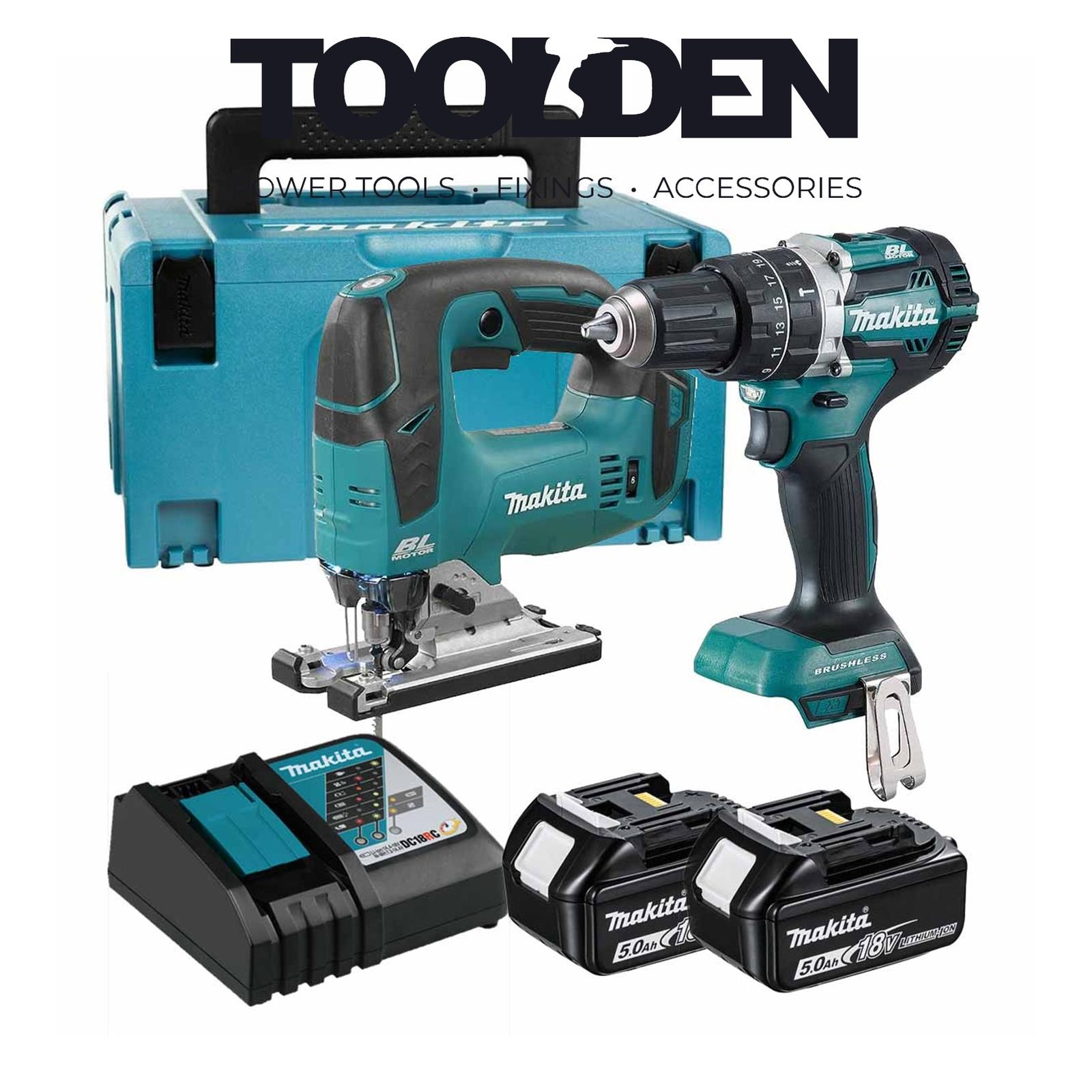 Makita DLX2134TJ 18V Combi Drill & Jigsaw Twin Pack with 2x 5.0Ah Batteries