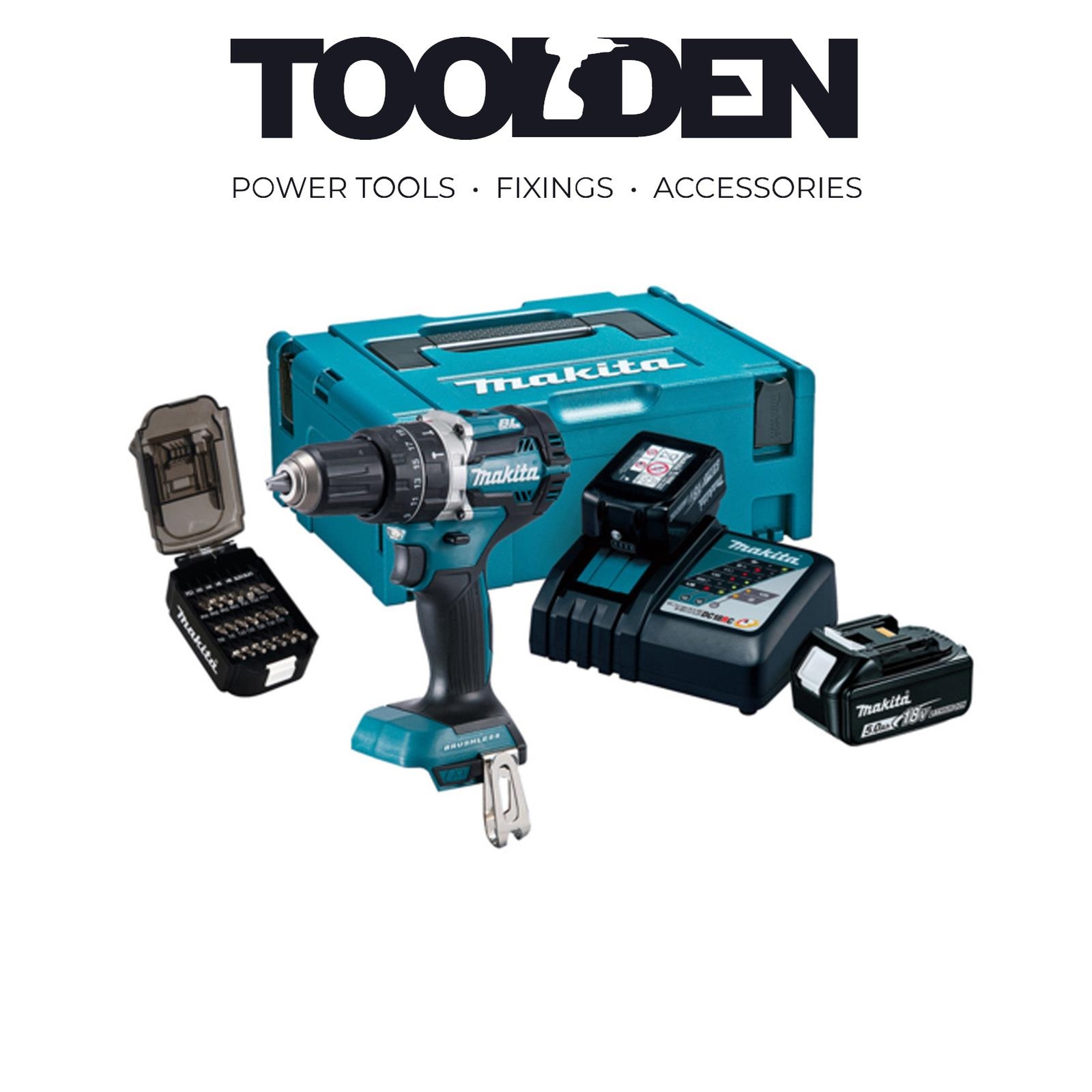 Makita DHP486 18V LXT Brushless 1/2″ Combi Hammer Drill + 2 x 5.0Ah Batteries