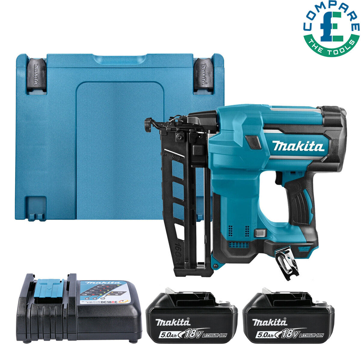 Makita DBN600RTJ 18V LXT Finishing Nailer + 2 x 5.0Ah Batteries, Charger & Case