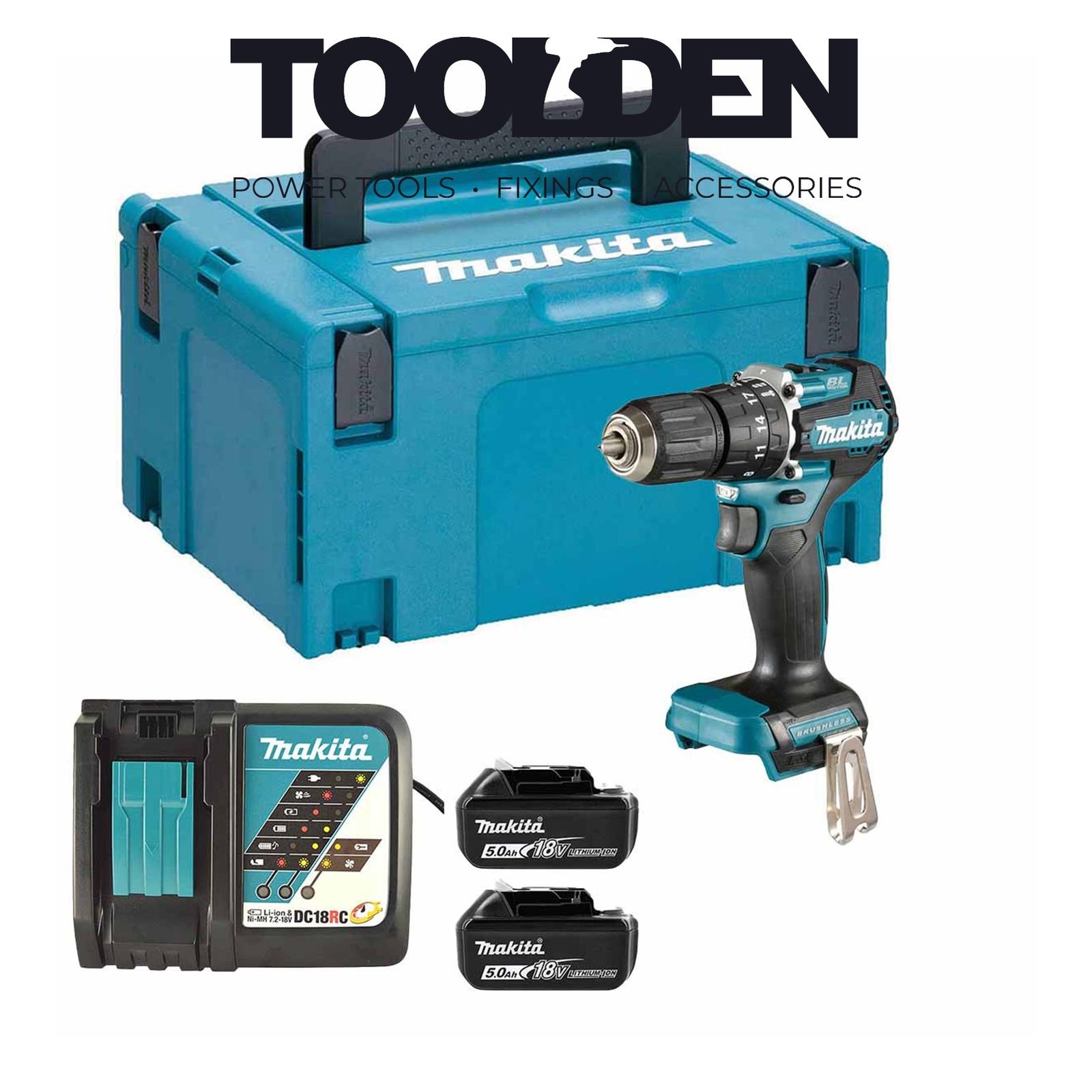 Makita DHP482Z 18V Combi Drill With 2 x 5.0Ah Batteries, Charger, Case & Inlay