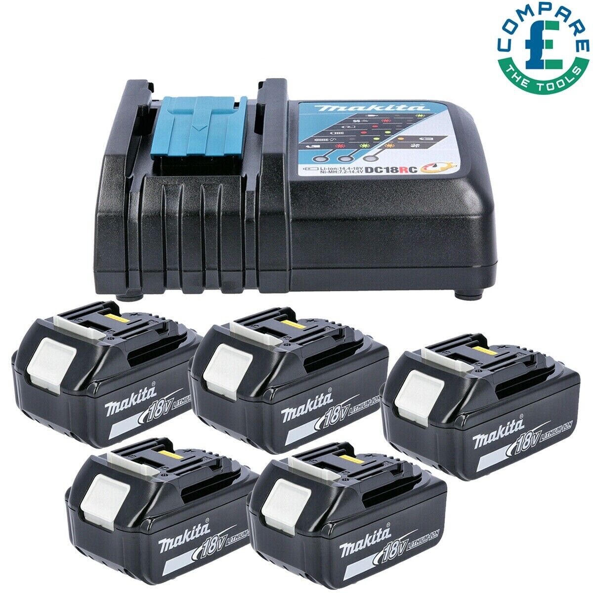 Makita Genuine DC18RC 7.2 - 18V Li-Ion Fast Charger With 5 x 5.0Ah Batteries