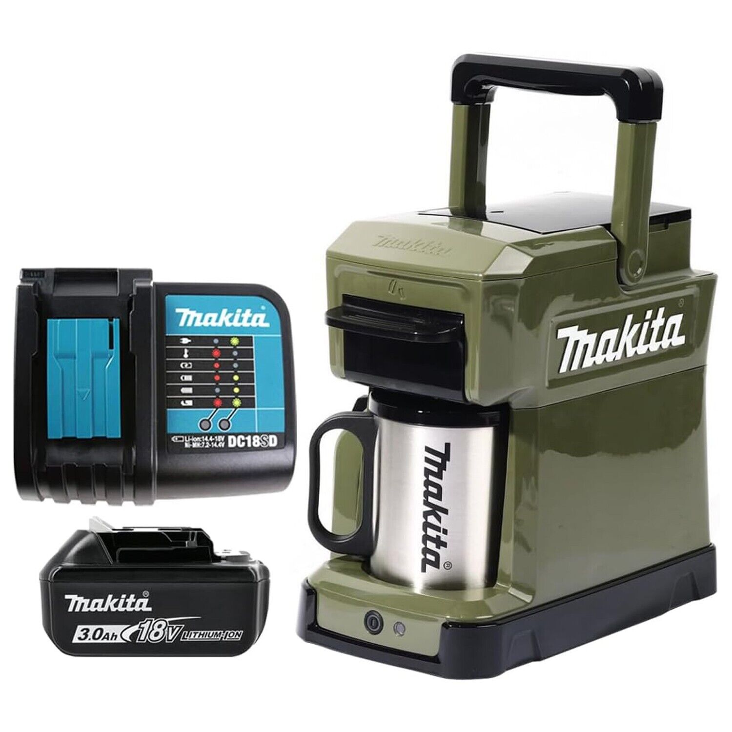 Makita DCM501SFO 12V / 18V Coffee Maker + 1 x 3Ah Battery & Charger Olive Green