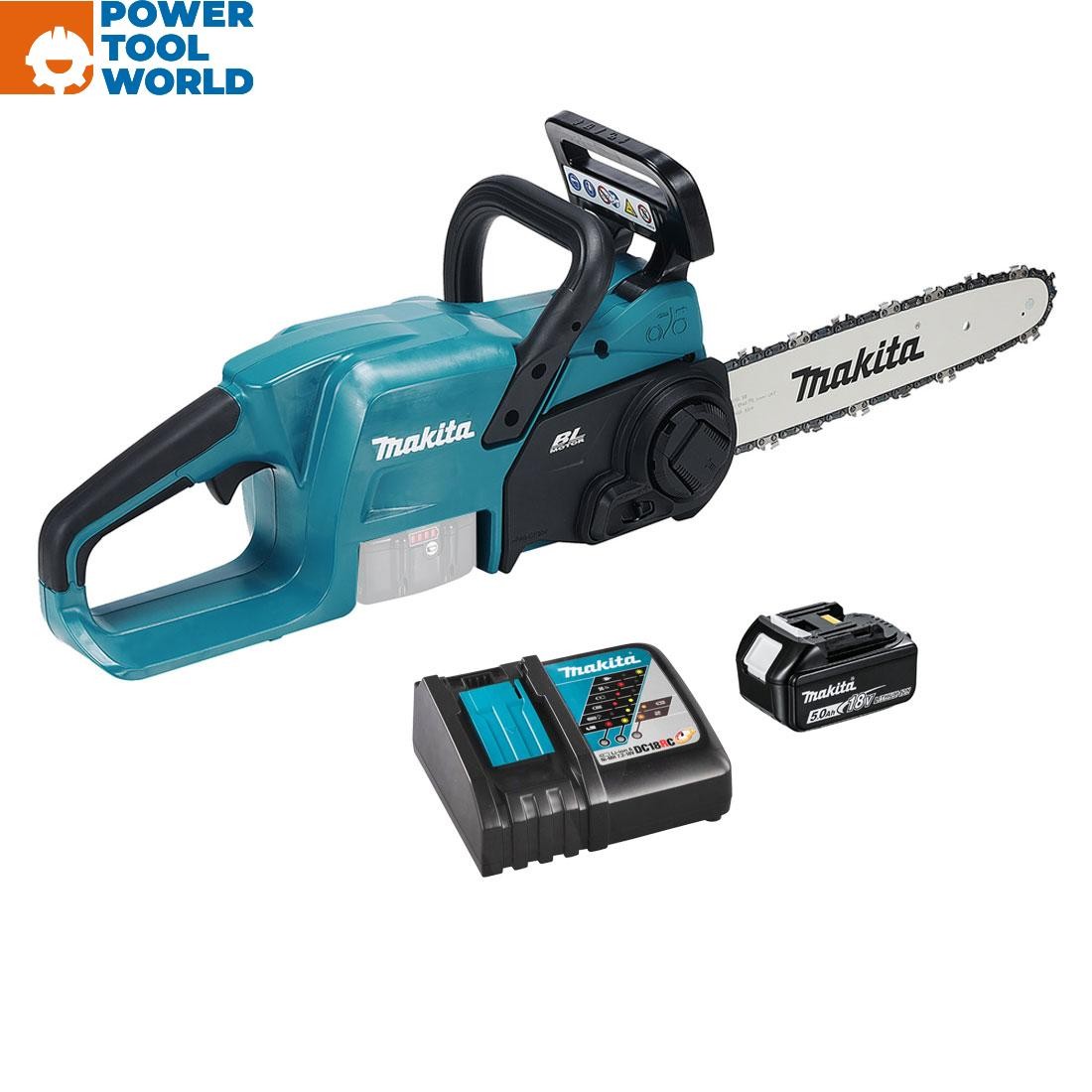 Makita DUC355 18v LXT Cordless Brushless Chainsaw 350mm 2 x 5ah Li-ion Battery Charger