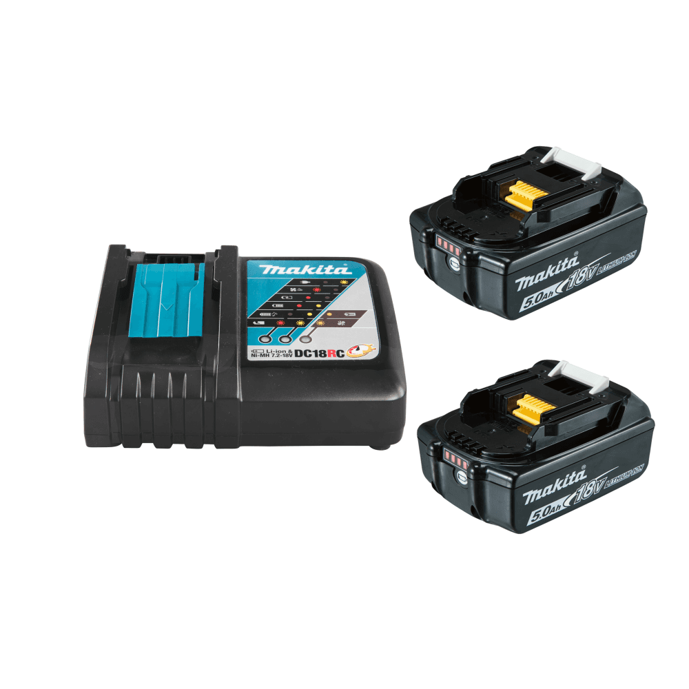 Makita 18V 6 Piece Power Tool Kit 2 x 5.0Ah Battery Charger & 100 Piece Bit Set