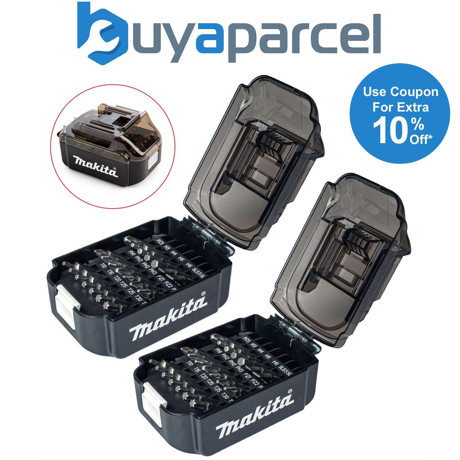 Makita 42 Piece Screwdriver Drill Bit Sets BL1850 Battery Shaped Bit Holder Set