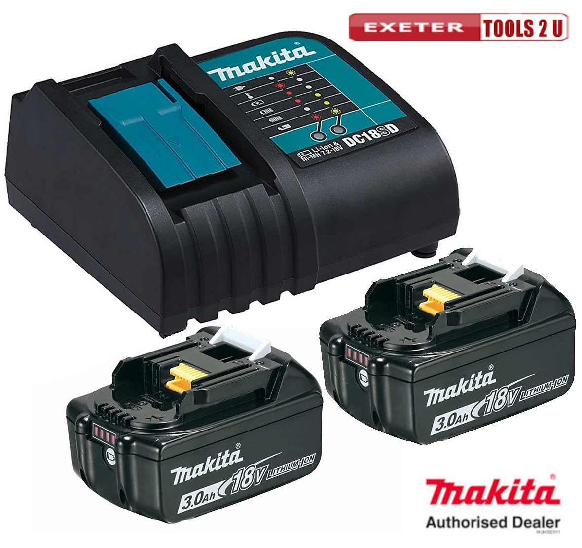 2 x Makita BL1830 Li-Ion 3.0ah Battery + DC18SD 14.4-18v Charger