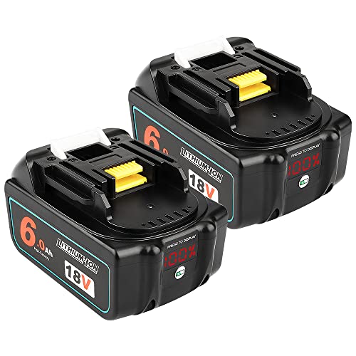 QUPERR 2-Pack 18V 6.0Ah Li-ion Replacement Batteries with Indicator (LED Display) Compatible with Makita 18V Battery BL1850 BL1850B BL1840 BL1830 BL1830B BL1860 BL1840B BL1845 BL1815 632B77 LXT