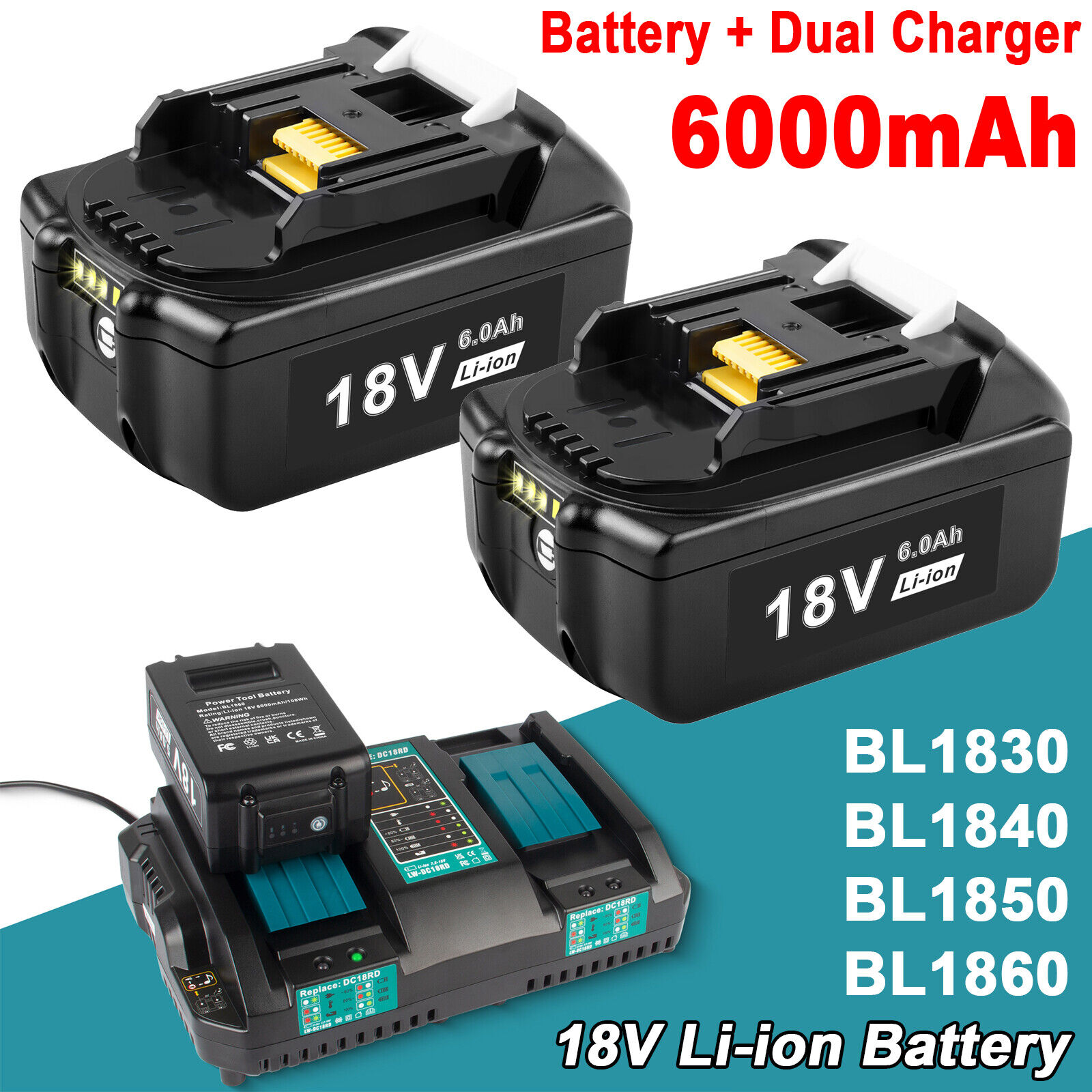 2X Battery + Double Charger For Makita BL1830B 18V Lithium Ion Battery BL1860