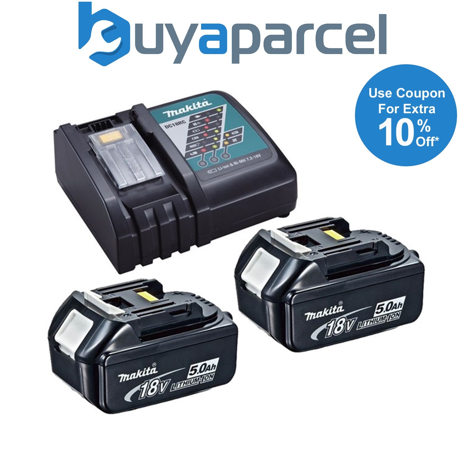 Makita BL1850 18V 2 x 5.0Ah Battery with DC18RD Dual Port Charger