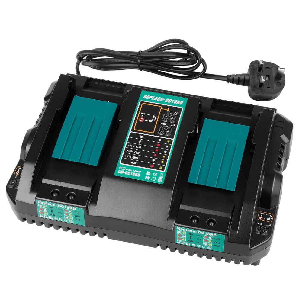 1x Dual Port Fast Charger for Makita 14.4V 18V Li-Ion Batteries DC18RD BL1830 BL1850 BL1860B Twin Battery Charger