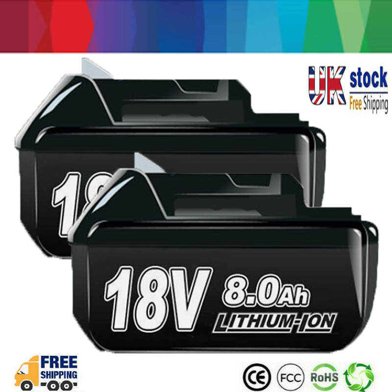 2X For Makita 18V 8.0Ah Li-ion Battery BL1830 BL1840 BL1850 BL1860B / UK Charger
