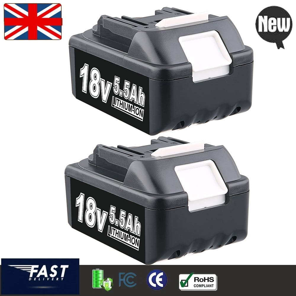 Upgraded 2 Pcs 18V 5500mAh/5.5Ah Batteries Replacement for Makita Battery 18V for Makita Batteries BL1850 BL1830 BL1860B BL1860 BL1830B BL1840 BL1820 BL1815 BL1835 BL1845 with LED Indicator