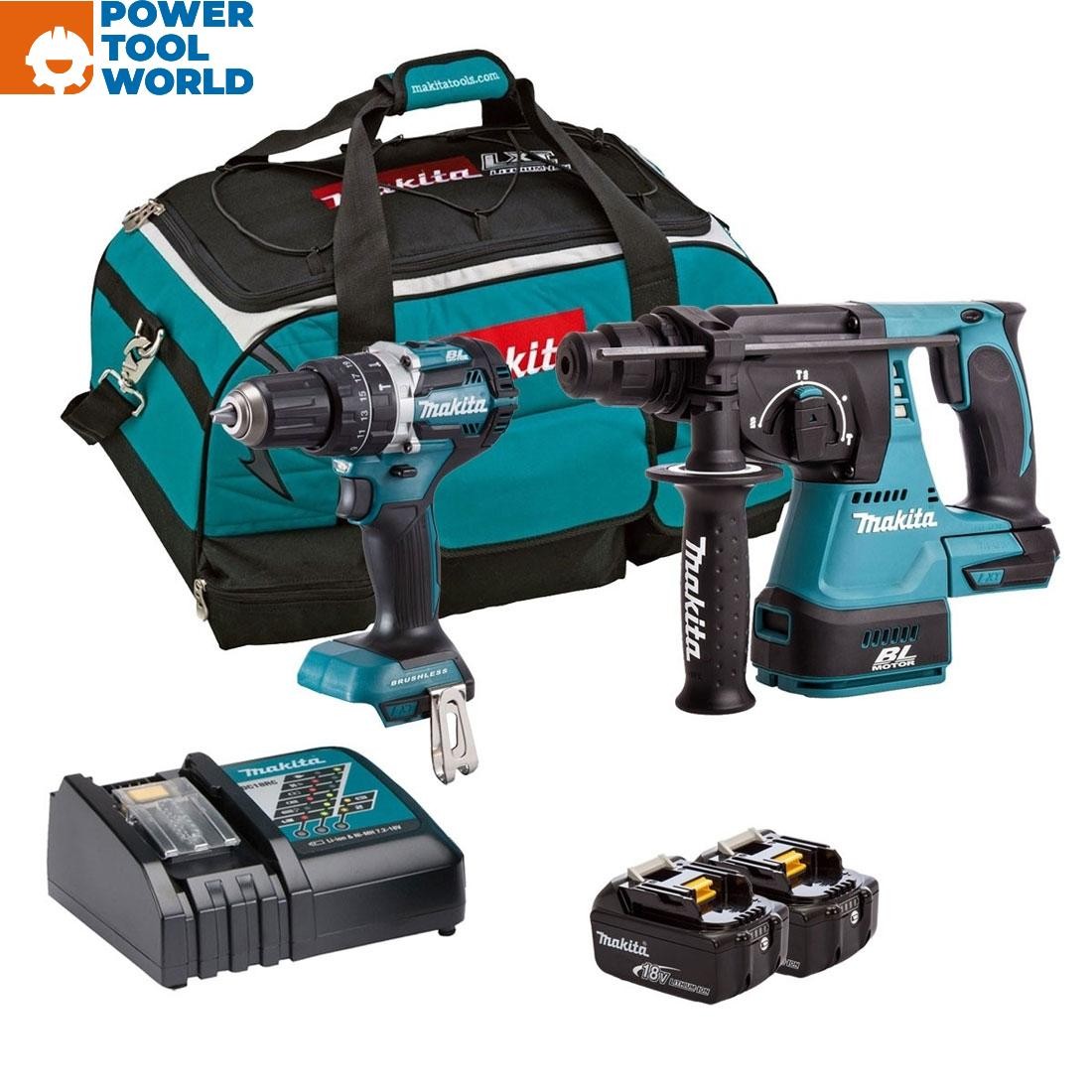 Makita 18v DLX2204TX3 Brushless Kit - DHP484 Combi Hammer Drill DHR242 SDS Drill