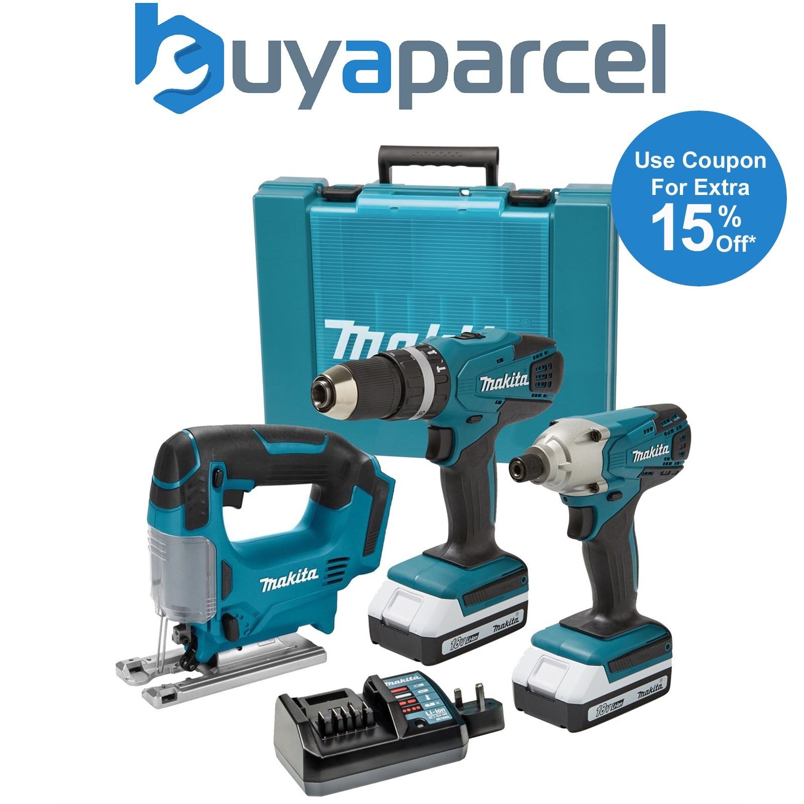 Makita 18v Cordless Li-ion Combi Hammer Drill & Impact Driver & Jigsaw Kit