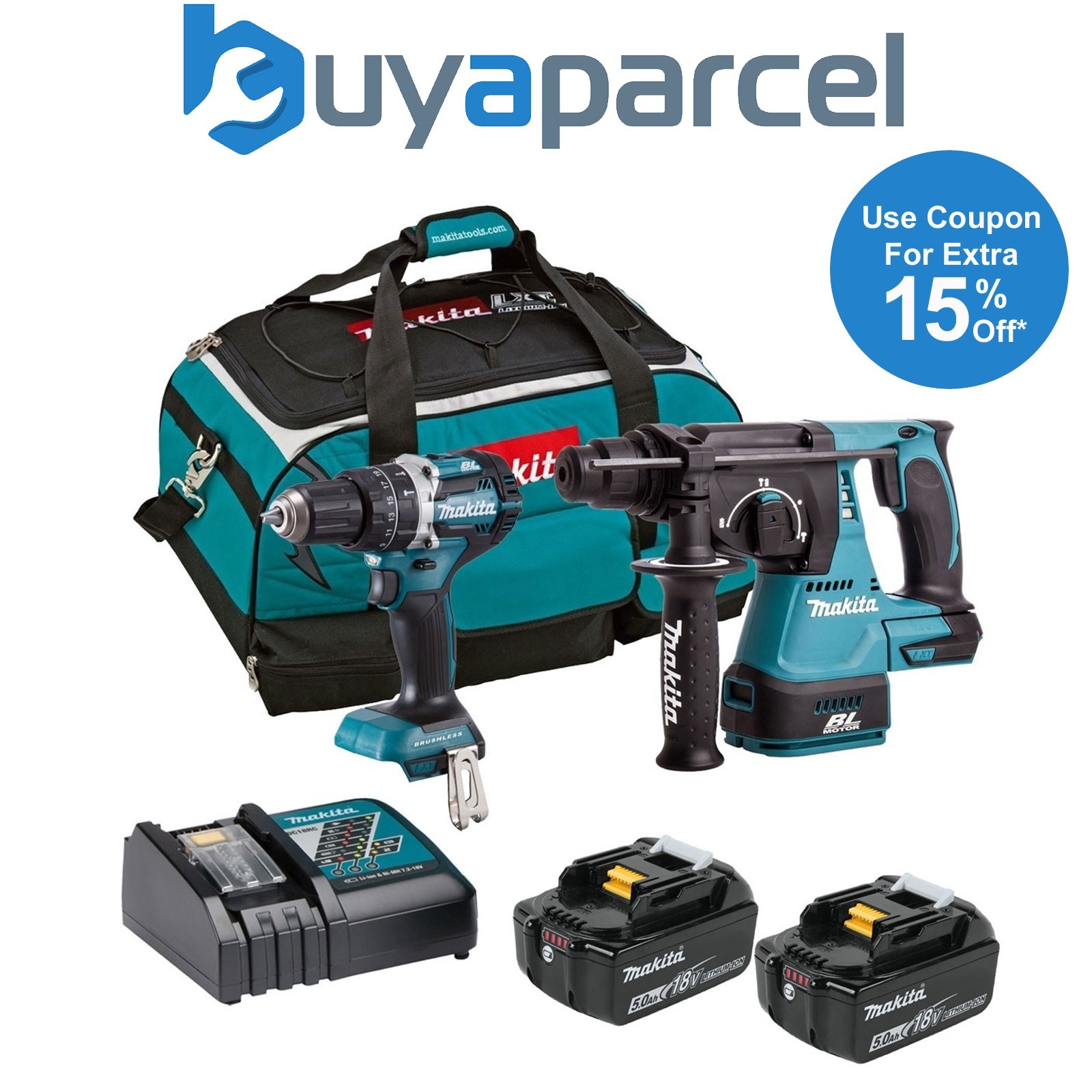 Makita DLX2025T 18v LXT 2 PC LXT Lithium Kit DHR202 SDS + DHP453 Combi Drill 5ah