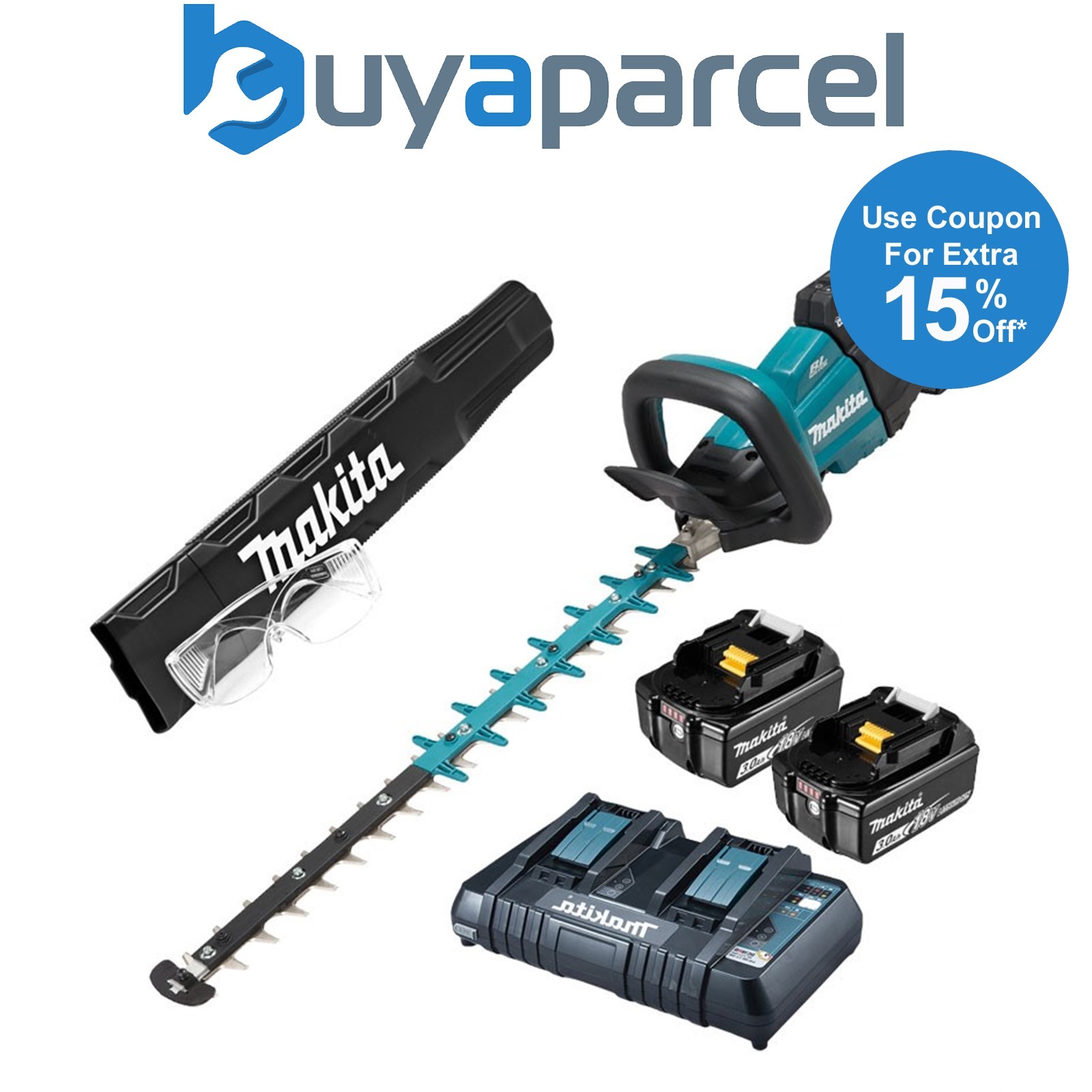 Makita 18v LXT Cordless Hedge and Grass Trimmer Kit 2 x 5ah Li-ion Battery Charger