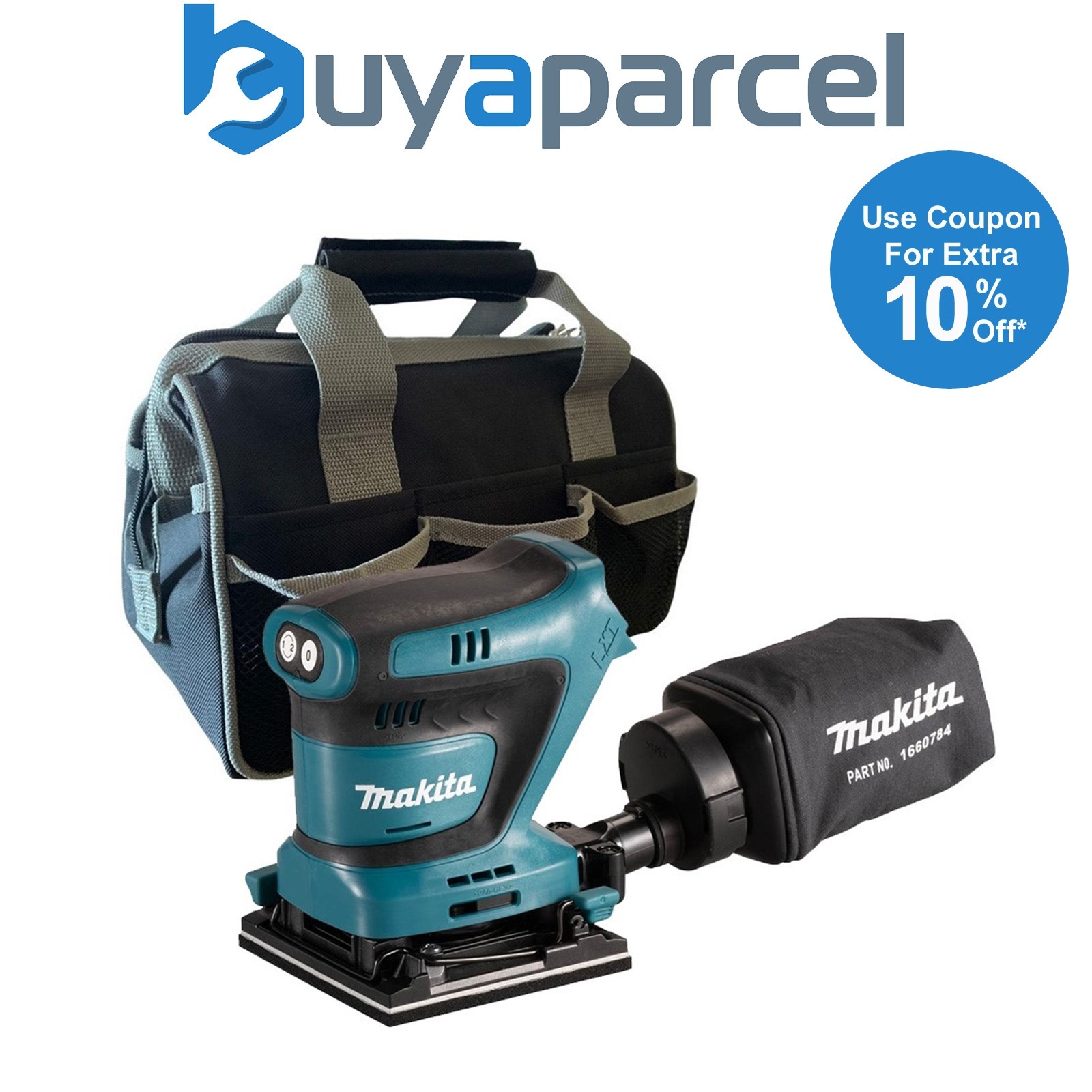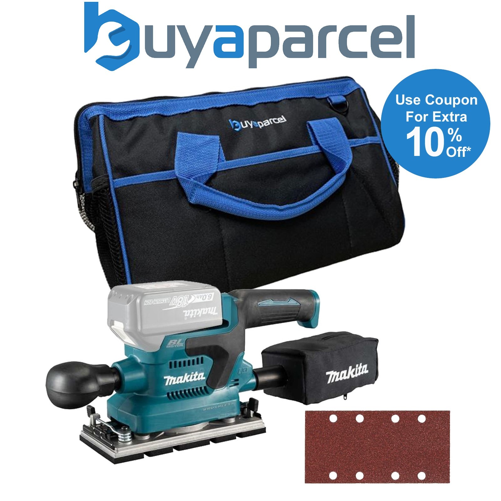 Makita DBO380Z 18v 1/3 Sheet Brushless Sander Cordless + Bag + 10 Sanding Sheets