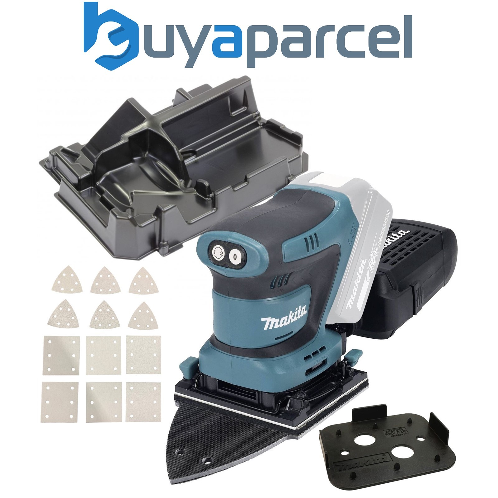 Makita DBO481Z 18v LXT 114mm 1/4 Sheet Finishing Cordless Palm Sander + Inlay