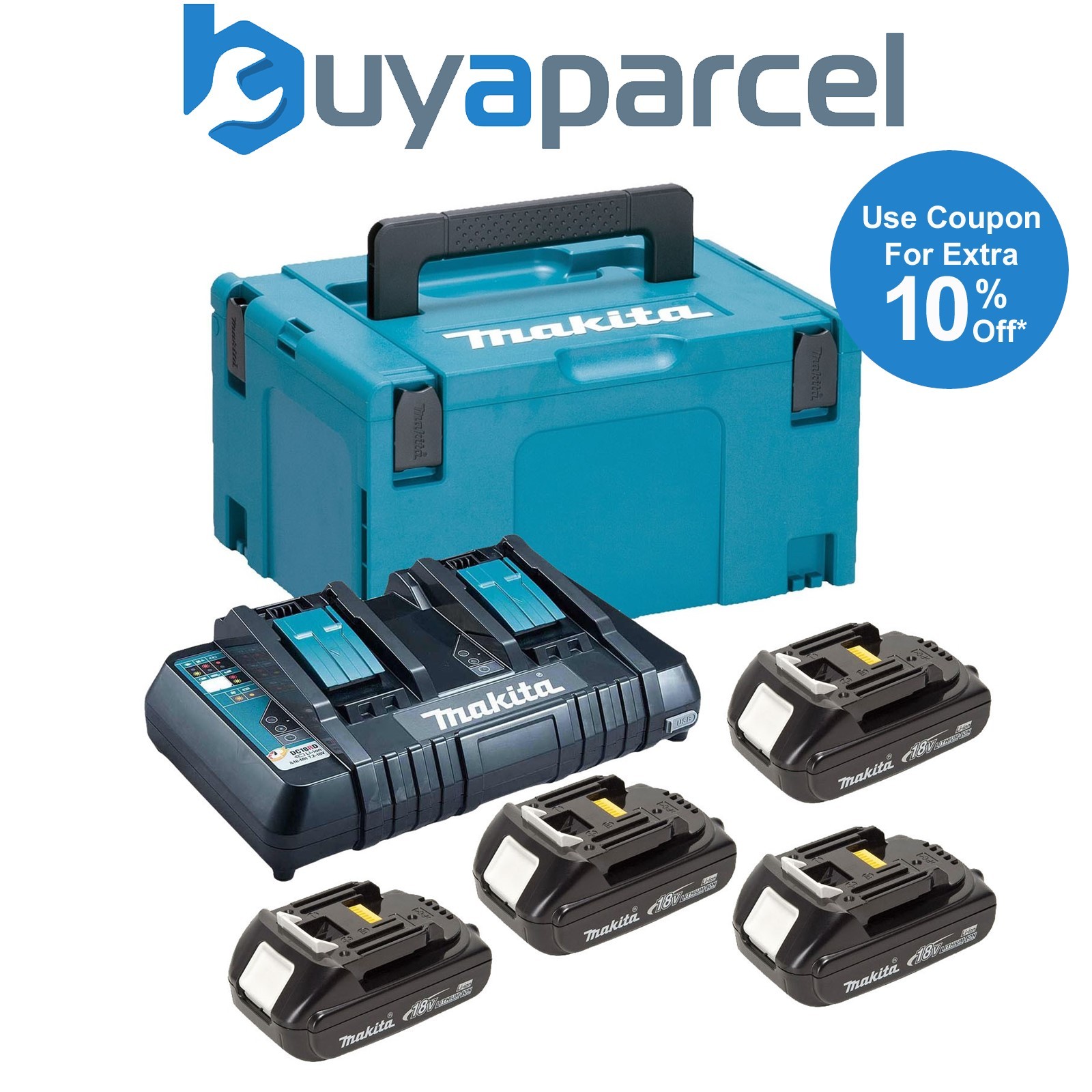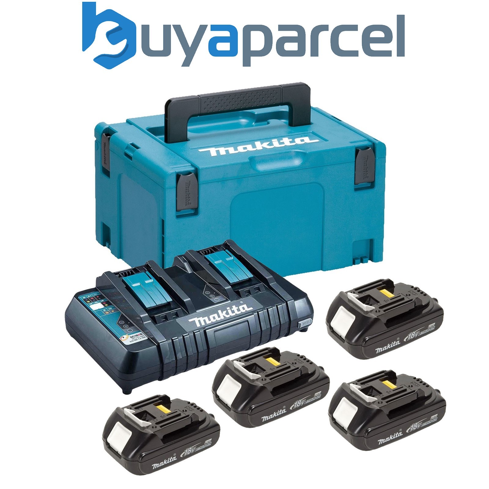 Makita BL1815 18v 4 x 1.5ah Lithium Batteries DC18RD Dual Port Charger + Makpac