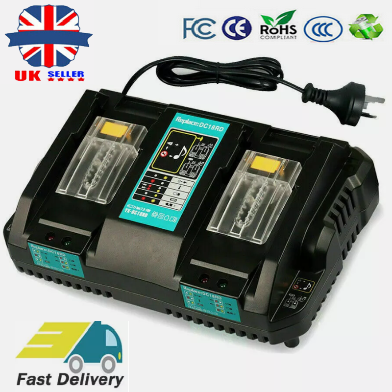 For Makita DC18RD 18v Li-Ion Twin Double Port Rapid Battery Charger 240V uk plug