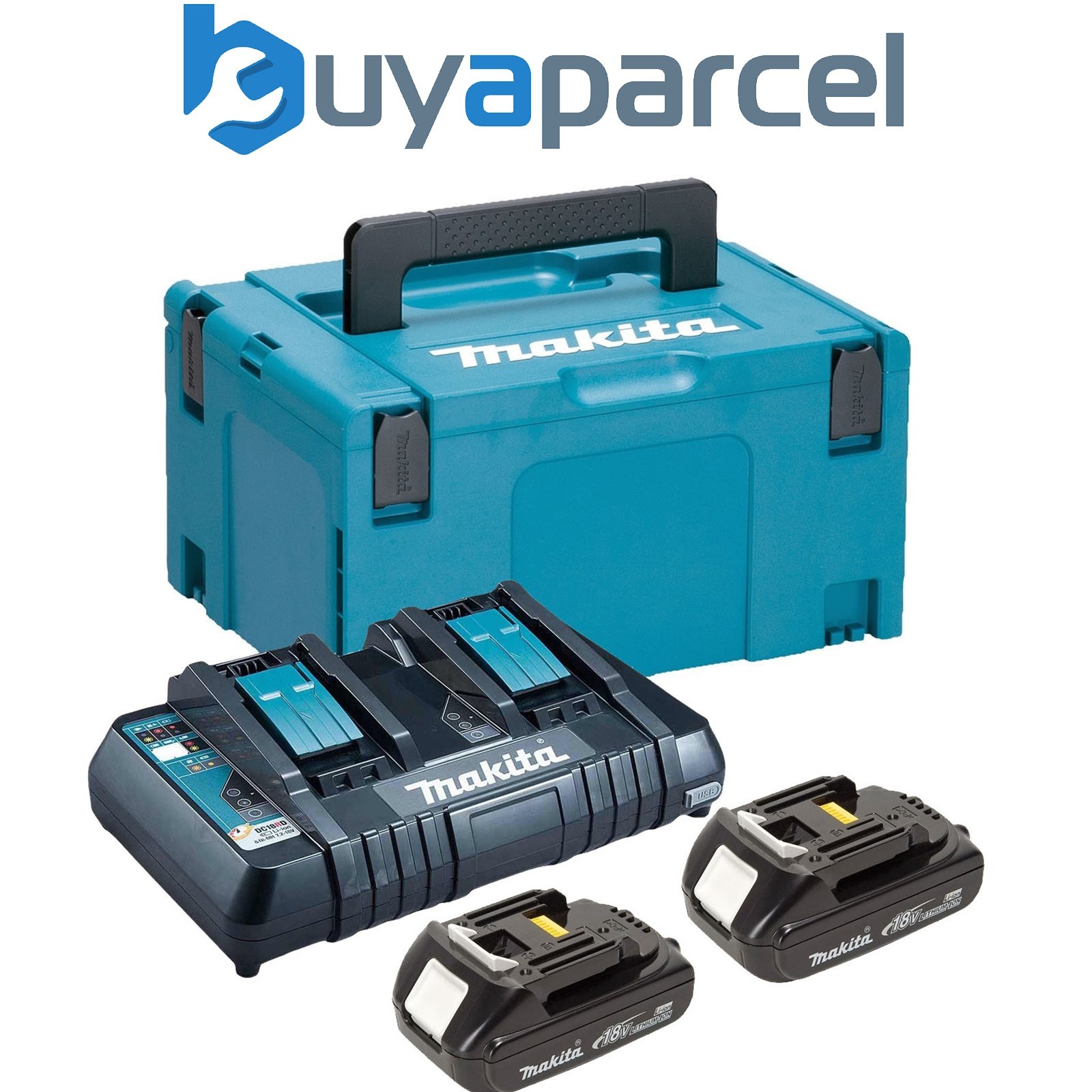 Makita BL1815 18v 2 x 1.5ah Lithium Batteries DC18RD Dual Port Charger + Makpac