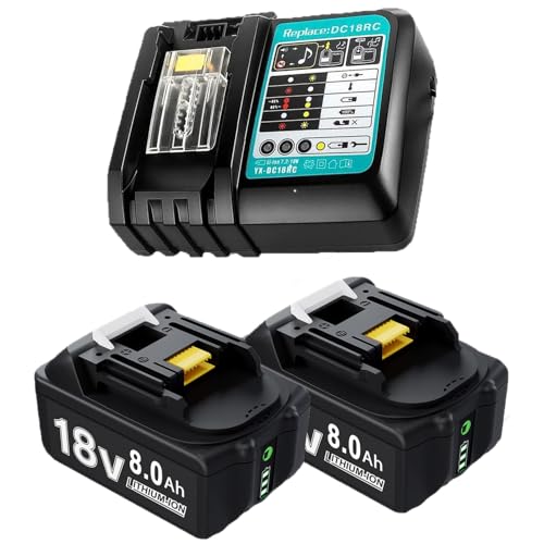 2 Pack 8.0Ah BL1850B Batteries + 4A DC18RC Charger Compatible with Ma-kita 18V Battery BL1860 BL1850B BL1850 BL1830B BL1830 BL1815 BL1840B BL1835 BL1845 BL1840 and DC18RA DC18RD