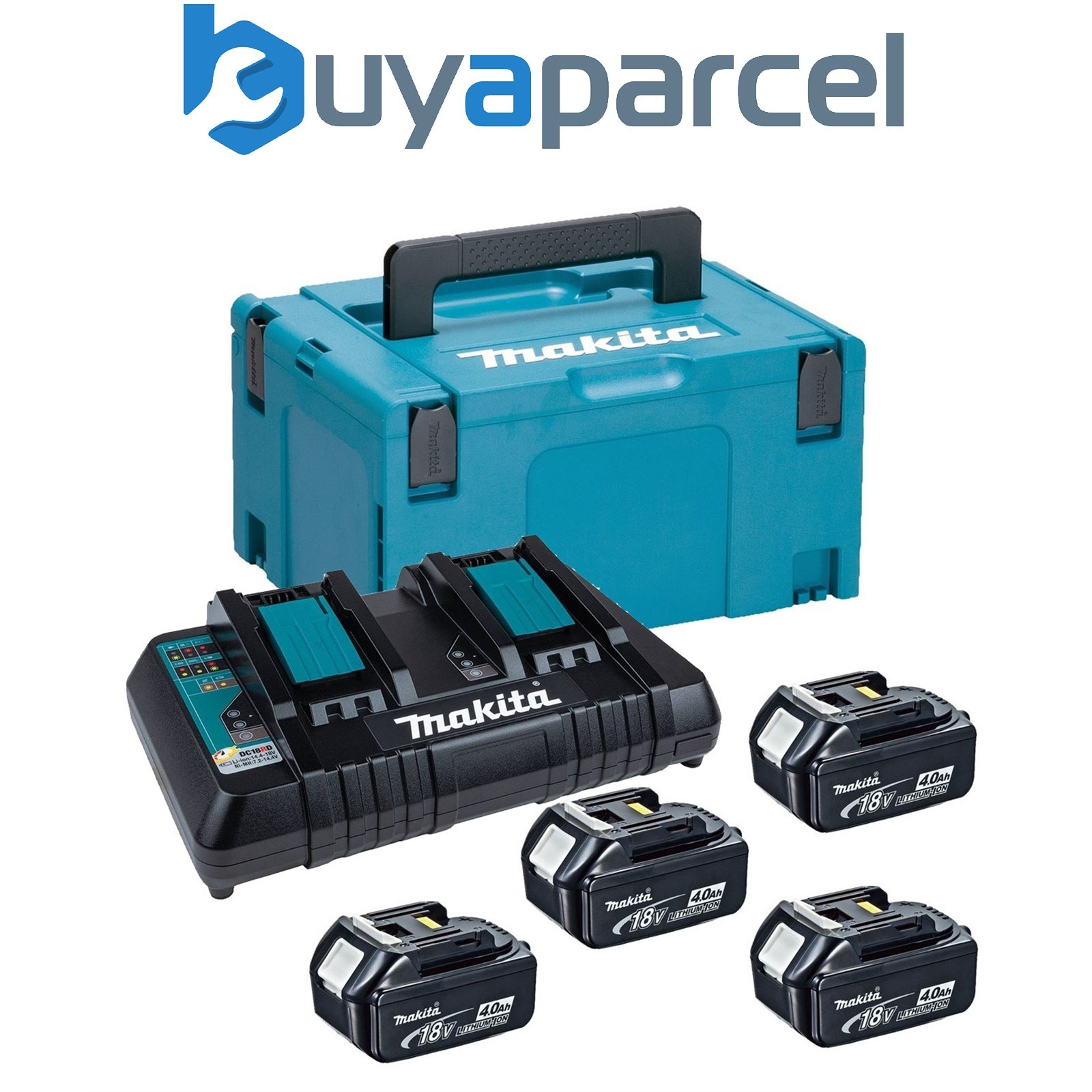 Makita BL1840 18v 4 x 4.0ah Lithium Batteries DC18RD Dual Port Charger + Makpac