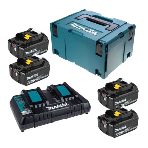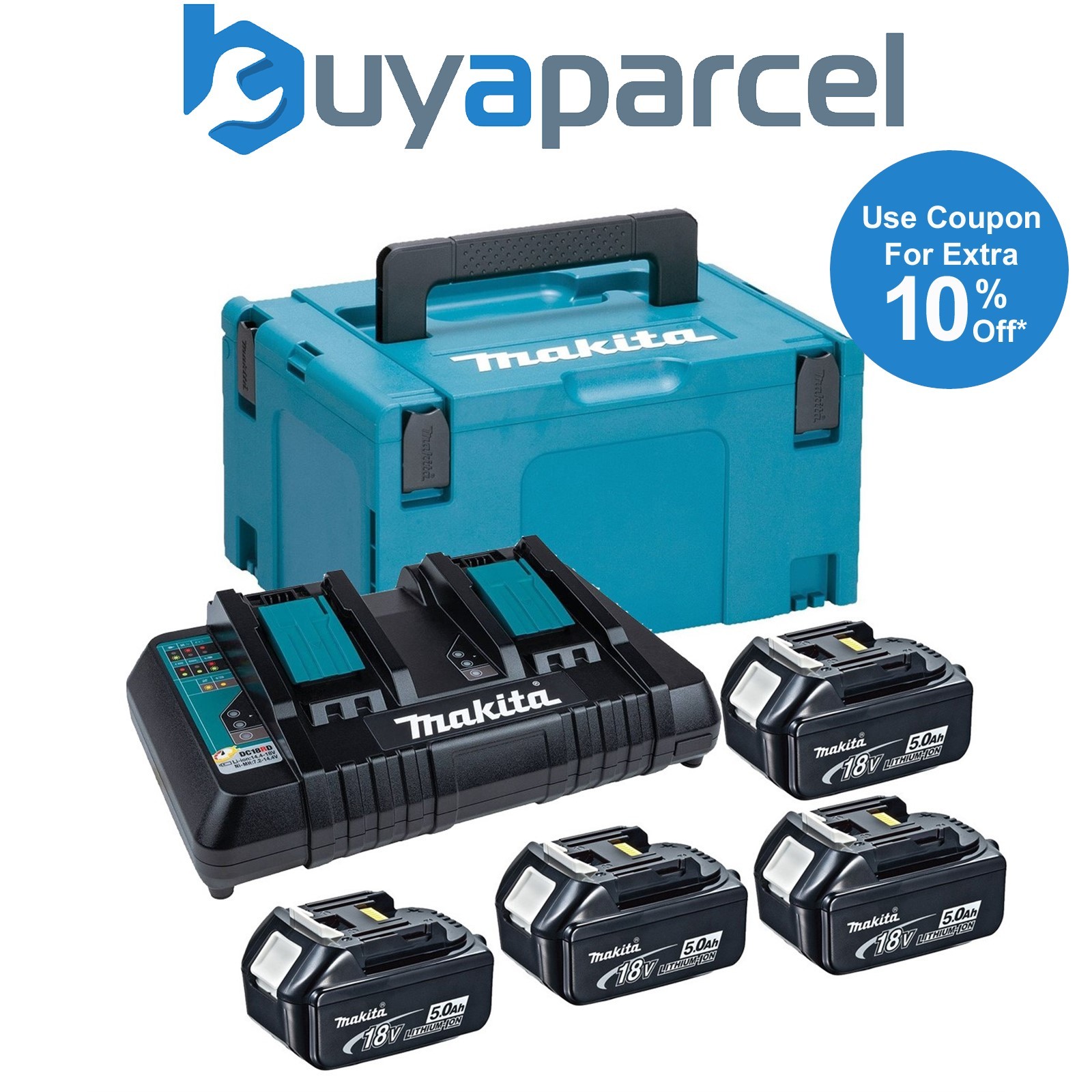 Makita BL1850 18v 4 x 5.0ah Lithium Batteries DC18RD Dual Port Charger + Makpac