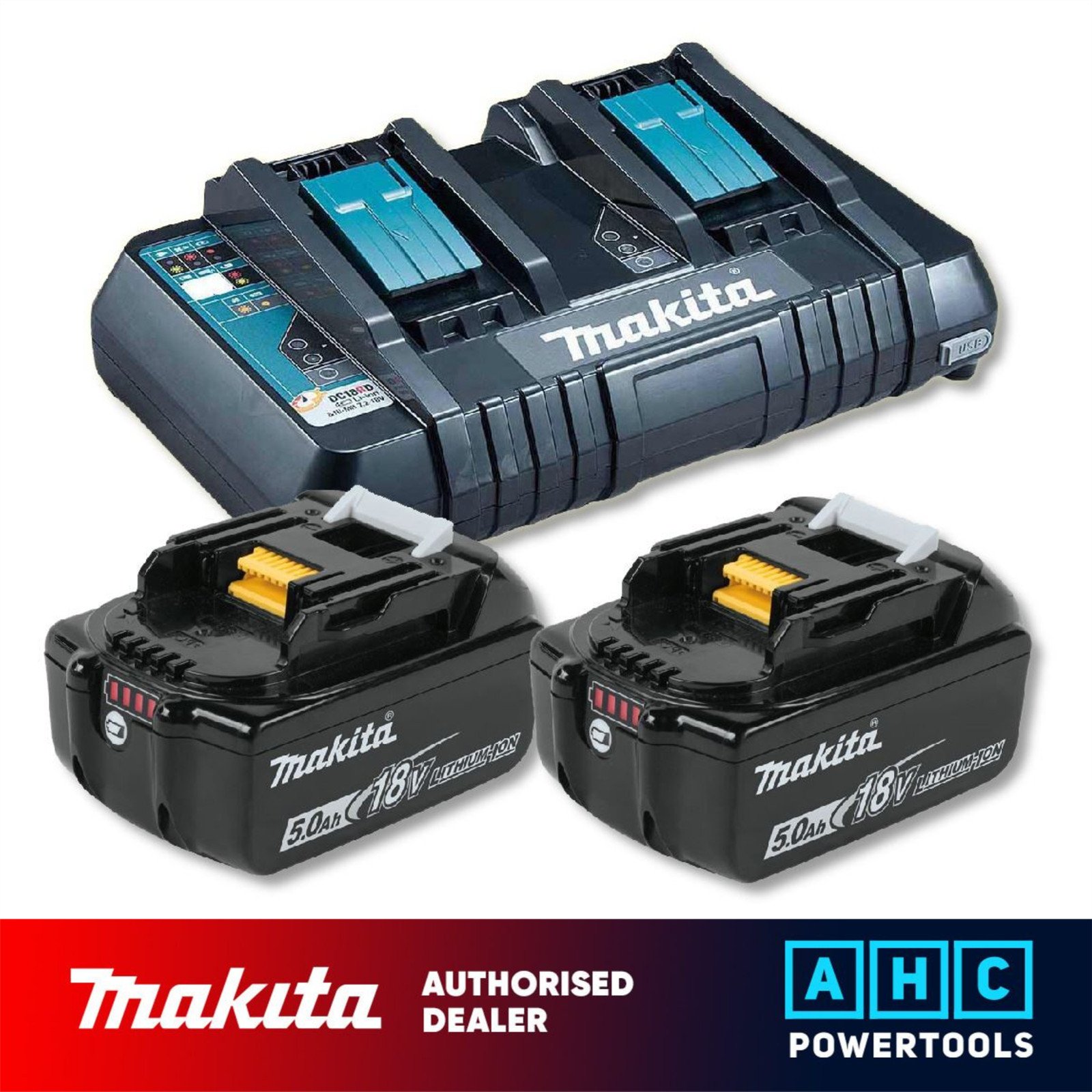 Makita BL1850 18v 2 x LXT 5.0ah Lithium-Ion Batteries + DC18RD Dual Port Charger