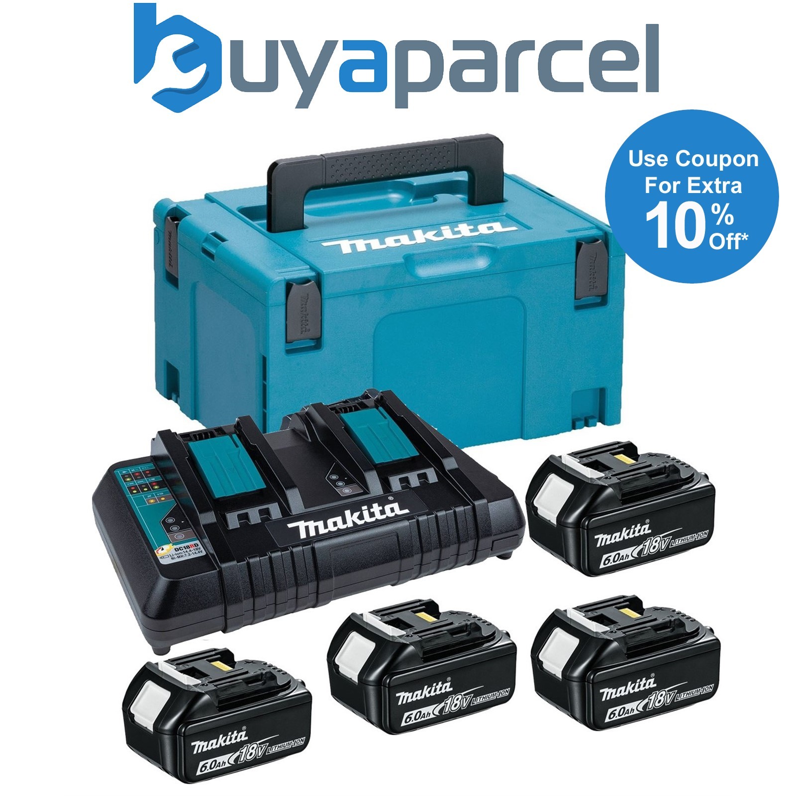 Makita BL1860 18v 4 x 6.0ah Lithium Batteries DC18RD Dual Port Charger + Makpac