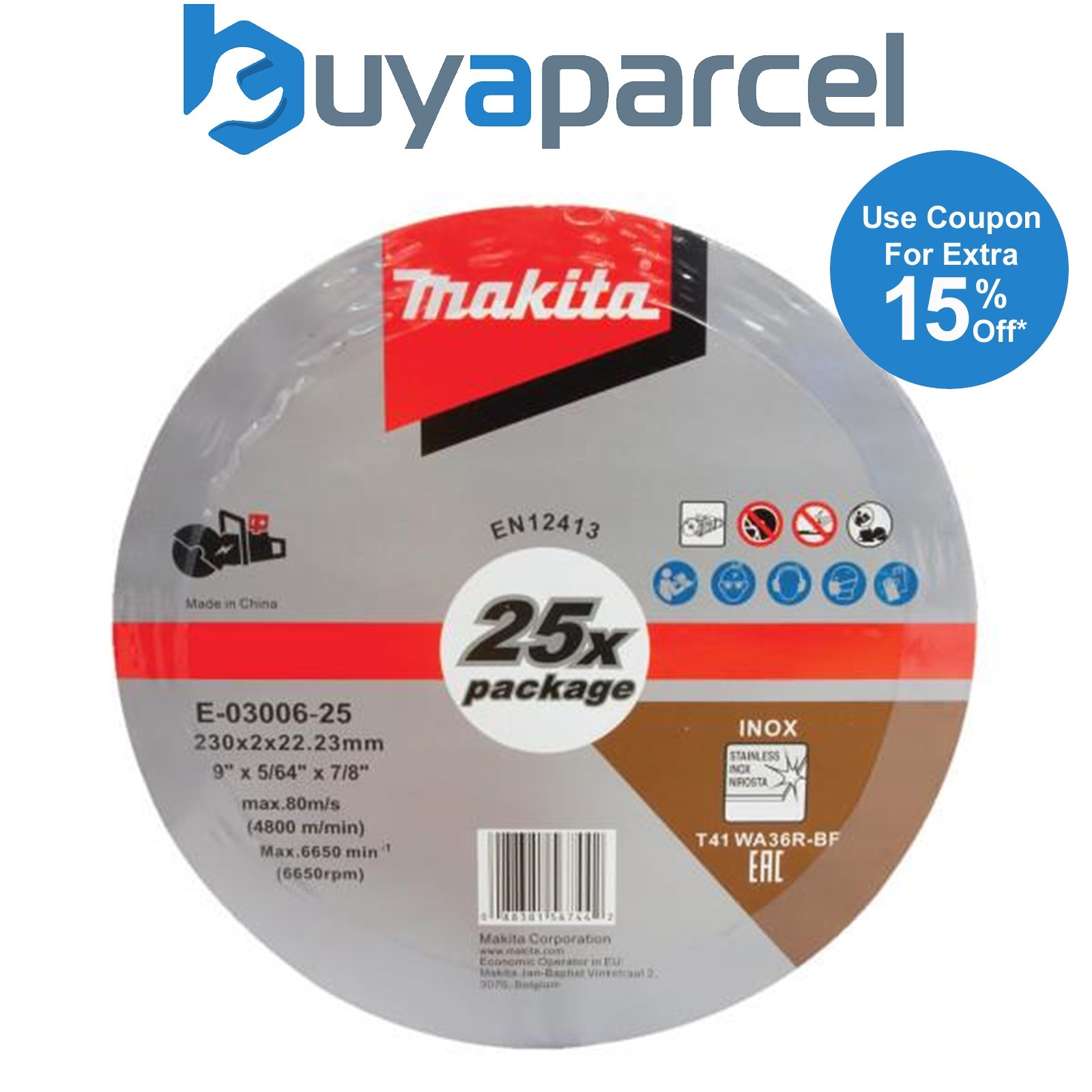 25 x Makita E-03006 Cutting Cut Off Wheels 230mm 9" For DCE090 Disc Cutter