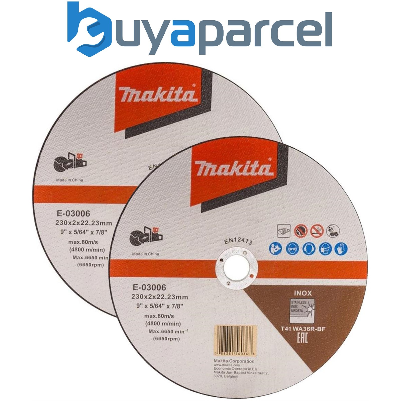 Makita E-03006 Cutting Cut Off Wheel 230mm 9" For DCE090 Disc Cutter x 2 Pack