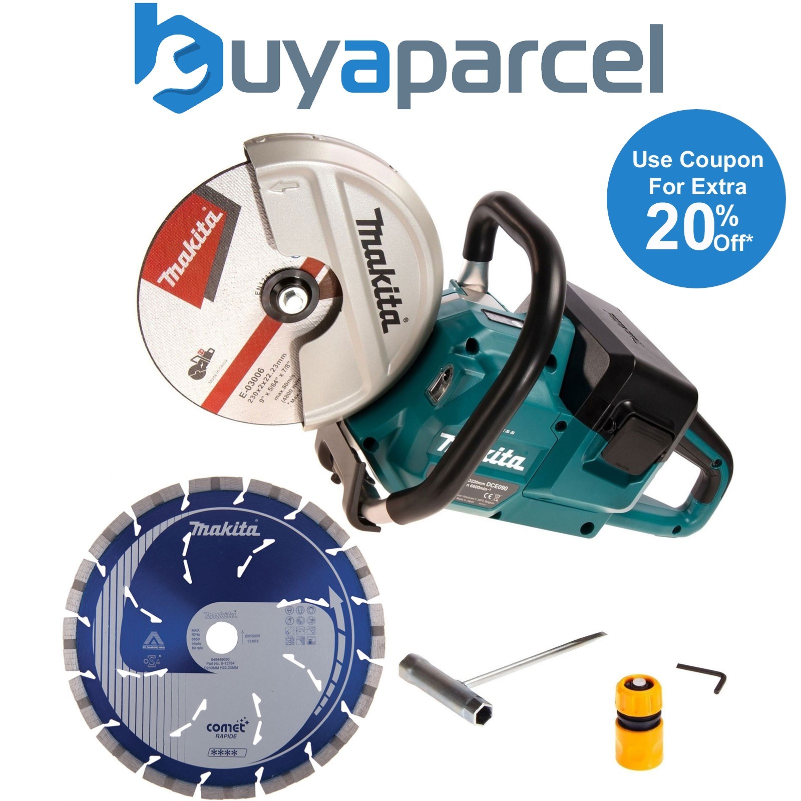 Makita DCE090ZX1 Twin 18v 9" Cordless Brushless Disc Cutter Comet Blade + Water