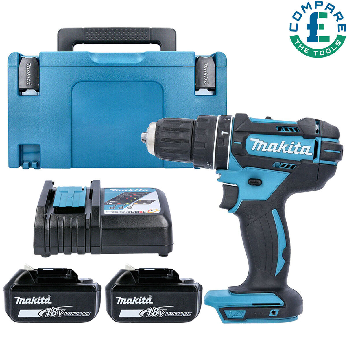 Makita DHP482RFJ 18v LXT Combi Hammer Drill - 2 x 3.0ah Batteries + Charger