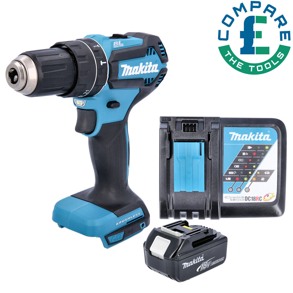 Makita DHP485 18V LXT Brushless Combi Drill With 1 x 6.0Ah Battery & Charger