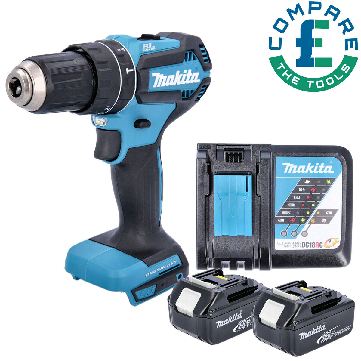 Makita DHP485 18V LXT Brushless Combi Drill With 2 x 5.0Ah Batteries & Charger