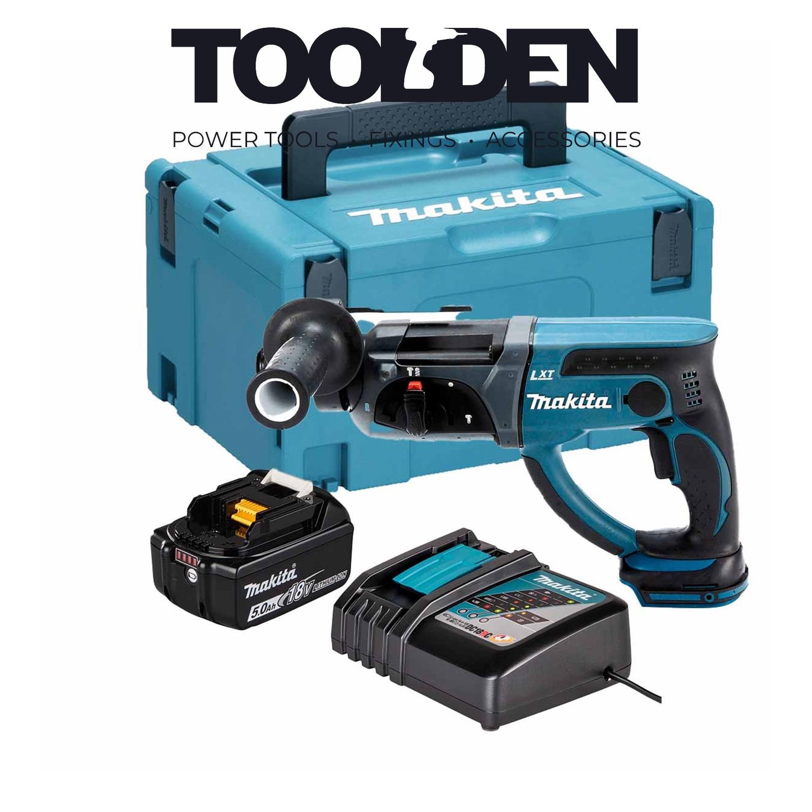 Makita DHR202RT1J 18V Li-ion LXT 20mm Rotary Hammer SDS-Plus Complete with 1 x 5.0 Ah Battery and Charger Supplied in a Makpac Case