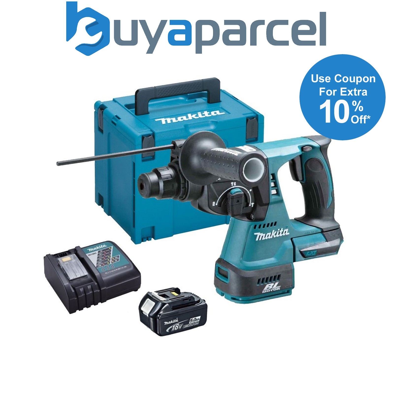 Makita DHR242Z 18v Brushless SDS+ Rotary Hammer + 2 x 5.0Ah Batteries & Charger