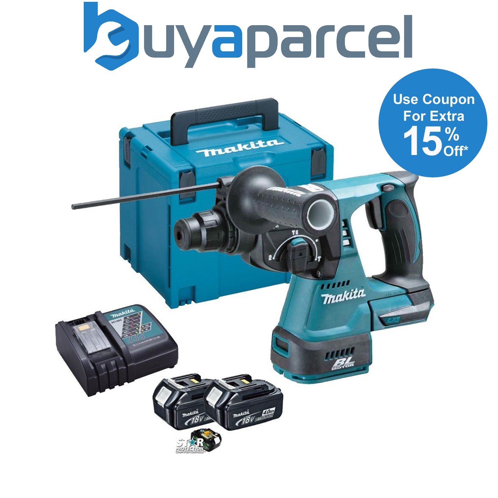 Makita DHR242RMJ 18v LXT Li-Ion 3 Mode SDS Rotary Hammer Drill, 2x4.0ah +Charger
