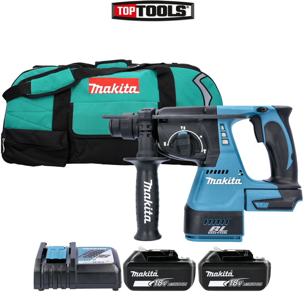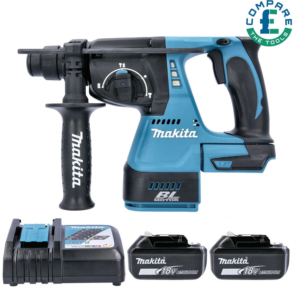 Makita DHR242Z 18v Brushless SDS+ Rotary Hammer + 2 x 5.0Ah Batteries & Charger