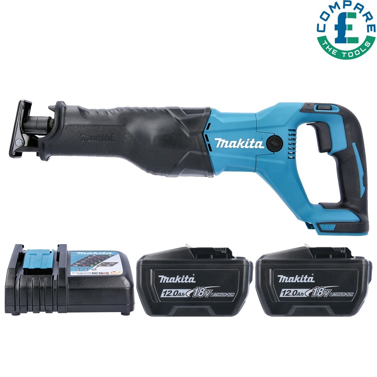 Makita DJR186 18V Cordless 32mm Reciprocating Saw + 2 x 12Ah Batteries & Charger
