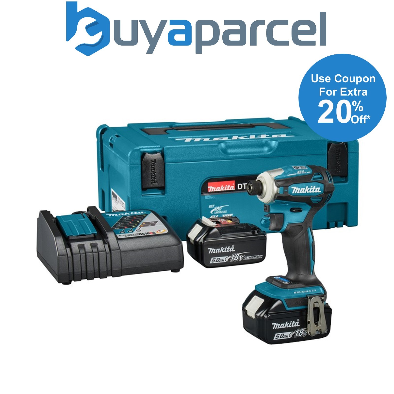 Makita 18V LXT DTD172 Brushless Impact Driver Body Only with 2 x 5ah Battery